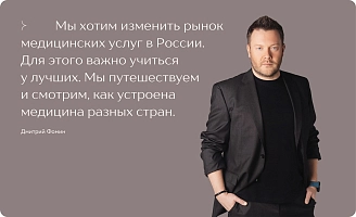 Мы меняем рынок медицины и в конце-концов сделаем так, что каждый человек в России будет иметь возможность получить современную и высокотехнологичную медицинскую помощь, основанную на принципах доказательной медицины и заботливом отношении.